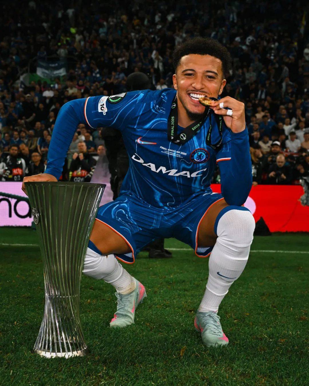 在一场曼联出租球员之间进行的欧协杯决赛中,桑乔笑到了最后。他下半场替补登场,并且打入一球,帮助切尔西4-1逆转安东尼效力的皇家贝蒂斯。在连续两年踢欧战决赛后25岁的桑乔终于捧起一座奖杯。