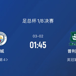 • 足总杯-曼城VS普利茅斯:曼城英超保四,对手此前淘汰了利物浦