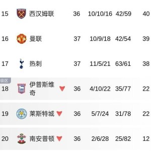 竟真不如降级队曼联近8轮仅拿2分,排英超倒1&比圣徒还少1分